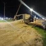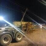 Um caminhão bitrem carregado com farelo de soja tombou na rodovia MT-449, nas proximidades do Posto Idasa, em Lucas do Rio Verde (MT), na noite desta quinta-feira (17). O acidente causou a quebra de um poste de energia elétrica de alta tensão, exigindo o isolamento da área por motivo de segurança.