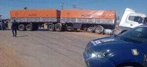 Durante rondas de rotina neste domingo (29), a equipe da Guarda Civil Municipal se deparou com um caminhão acidentado, caído em uma valeta na Avenida da Produção, em frente ao armazém Binotti, nas proximidades do acesso à BR-163, em Lucas do Rio Verde (MT).