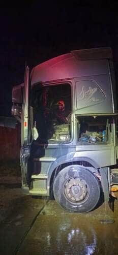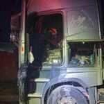 Incêndio iniciou na cabine do veículo e foi controlado antes de atingir o tanque de combustível; condutor tentou conter as chamas com extintor até a chegada dos militares.