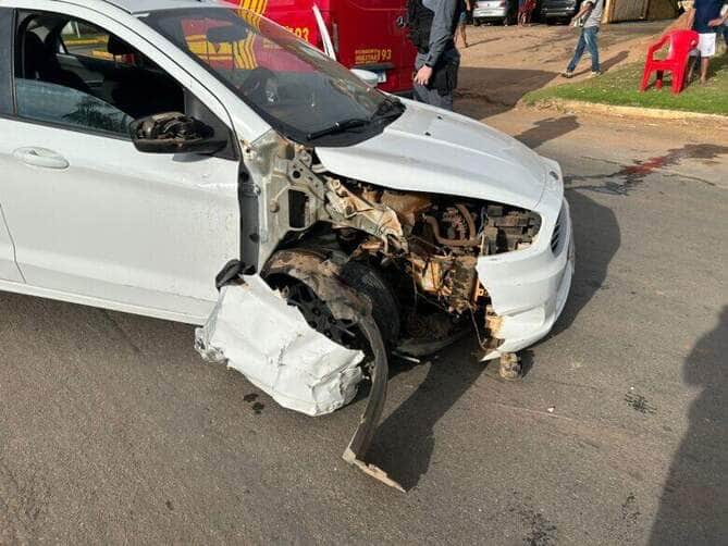 Um acidente chamou a atenção na tarde desta segunda-feira (27) na Avenida Brasil, em Lucas do Rio Verde, na pista que dá acesso ao bairro Jardim das Palmeiras. Uma condutora perdeu o controle do carro e colidiu violentamente contra um poste de energia elétrica. Apesar da intensidade do impacto e dos danos significativos no veículo, especialmente na roda dianteira direita, a motorista foi atendida no local pelo Corpo de Bombeiros e não sofreu ferimentos graves.