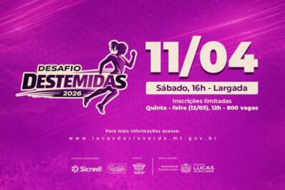 Com a oferta de 800 vagas destinadas às mulheres luverdenses, começam nesta quinta-feira (12) as inscrições para o Desafio das Destemidas 2026. A competição será realizada pelo segundo ano consecutivo e promete reunir centenas de participantes em uma prova que mistura força, superação e espírito de aventura, com percurso que inclui trilhas, obstáculos e trechos pavimentados.