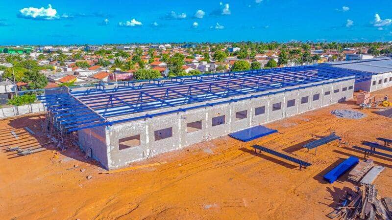 De acordo com a equipe de engenharia do setor de Projetos e Fiscalização da Secretaria de Desenvolvimento Econômico, Planejamento e Cidade, além da estrutura de concreto e da quadra, a obra já concluiu a construção das paredes de alvenaria, a instalação da estrutura metálica e está finalizando a cobertura dos espaços da escola.