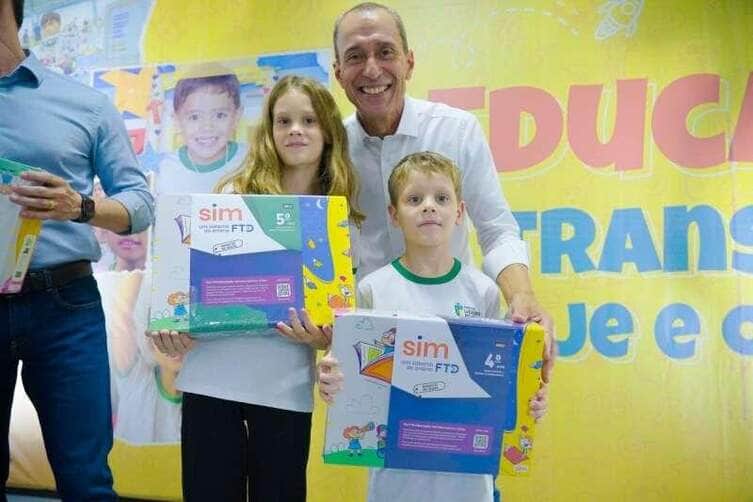 A Prefeitura de Lucas do Rio Verde, por meio da Secretaria de Educação, realizou na tarde desta quinta-feira (13), a entrega simbólica do material didático que compõe o Sistema de Ensino Estruturado (apostilado), FTD Educação. A iniciativa atenderá o ensino fundamental, dos anos iniciais aos anos finais ( 1º ao 9º ano). O investimento, de R$ 4.326.958,00, com recursos próprios, tem como foco a educação integral, alinhando-se aos campos de experiência propostos pela Base Nacional Comum Curricular (BNCC).