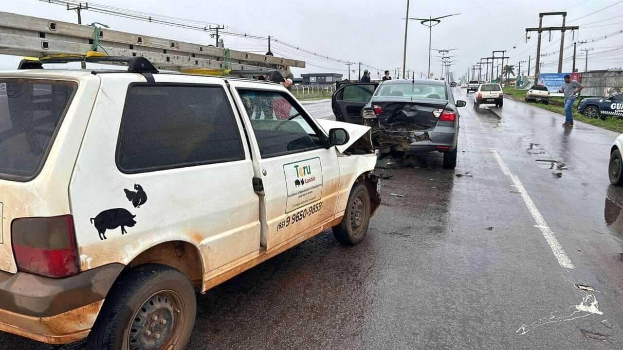Engavetamento envolvendo 4 veículos deixa o trânsito lento na MT-449