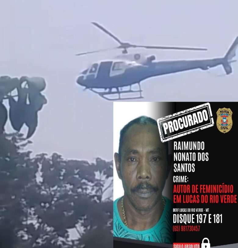 As forças de segurança de Lucas do Rio Verde seguem empenhadas nas buscas por Raimundo Nonato dos Santos, apontado como o autor do feminicídio de Antonieta Barroso dos Santos, de 51 anos. A operação, que entrou nesta quinta-feira (30) em seu segundo dia, conta com o apoio do Centro Integrado de Operações Aéreas (Ciopaer) de Sorriso, que utiliza um helicóptero para auxiliar nas buscas. As diligências se estendem por uma área de mata que chega a 65 quilômetros de distância do perímetro urbano. VÍDEO NO FINAL DA MATÉRIA