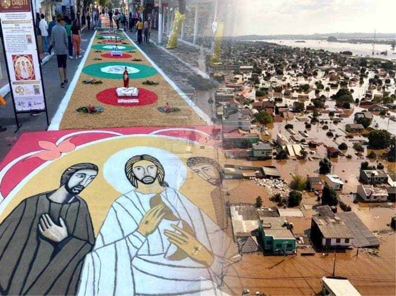 Igreja católica organiza tapete solidário de Corpus Christi em prol das vítimas das enchentes no RS