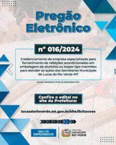Empresários do ramo de alimentação em Lucas do Rio Verde e região devem ficar atentos ao prazo final para participação no Pregão Eletrônico nº 016/2024, que visa o credenciamento de empresa especializada no fornecimento de refeições acondicionadas — as conhecidas marmitex — para atender as diversas ações desenvolvidas pelas secretarias municipais.