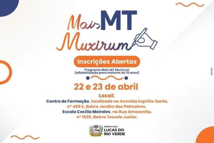 Desenvolvido por meio de uma colaboração entre Governo do Estado de Mato Grosso e Prefeitura de Lucas do Rio Verde, o Programa Mais MT Muxirum está com matrículas abertas para novas turmas de alfabetização no município. O Programa atenderá pessoas com idade acima dos 15 anos, que ainda não tiveram acesso ou oportunidade de aprender a ler e escrever.