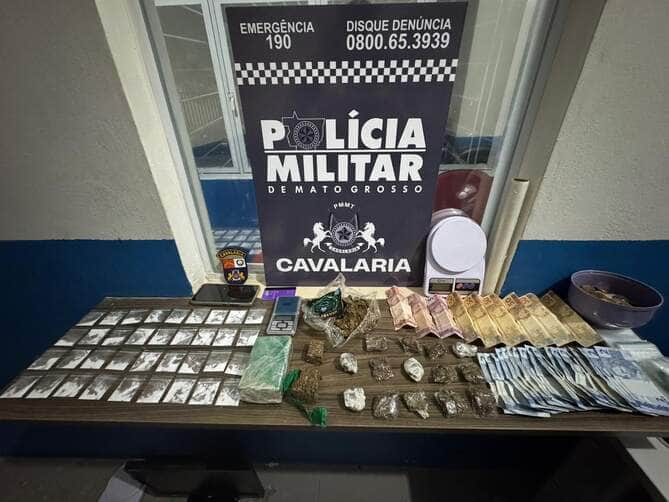 Ainda durante a ocorrência, o suspeito apontou a localização do fornecedor, suposto membro da facção Comando Vermelho. Na residência dele os policiais apreenderam 36 porções de cocaína, um pacote de maconha, balança de precisão, embalagens tipo zíper, um rolo de papel filme e R$167,75 em moedas.