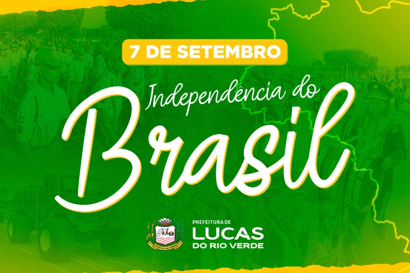 A Prefeitura de Lucas do Rio Verde informa que o ato cívico em comemoração à Independência do Brasil será realizado em novo horário, como medida de prevenção em razão da baixa umidade do ar. O evento será realizado às 7h, no dia 7 de setembro, domingo, em frente ao Paço Municipal.