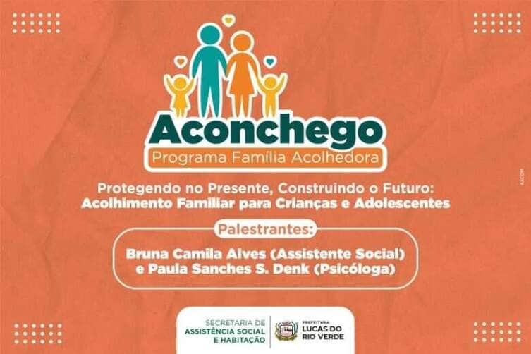 Com o objetivo de sensibilizar a população e ampliar o número de famílias cadastradas, o Programa Família Acolhedora – Aconchego, promovido pela Secretaria de Assistência Social e Habitação de Lucas do Rio Verde, realiza uma palestra na próxima quarta-feira, 30 de abril, às 14h30, no auditório da Prefeitura. A ação terá a participação da assistente social Bruna Camila Alves e da psicóloga Paula Sanches Denk, que irão conversar com os presentes e esclarecer dúvidas sobre o funcionamento do programa.