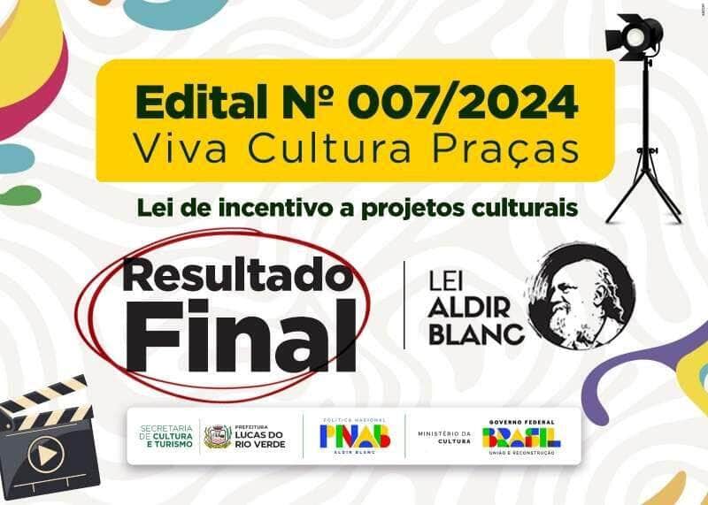 A Prefeitura de Lucas do Rio Verde, por meio da Secretaria de Cultura e Turismo, publicou nesta terça-feira (10), o resultado final do Edital de Chamamento Público Nº 007/2024, denominado “Viva Cultura – Praças”. O edital tem como objetivo selecionar projetos culturais para firmar termos de execução com recursos provenientes da Política Nacional Aldir Blanc (PNAB), que busca fomentar a cultura em nível nacional.