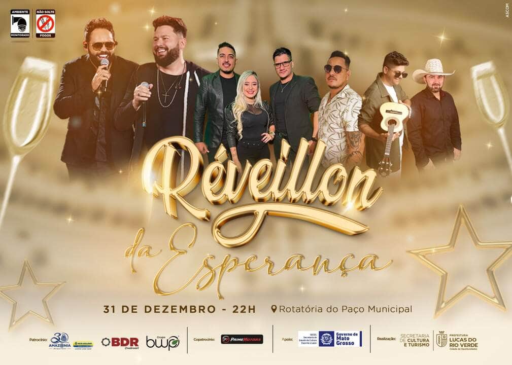 A Prefeitura de Lucas do Rio Verde segue preparando uma grandiosa festa da virada neste dia 31 de dezembro. O Réveillon da Esperança terá quatro atrações culturais, com início às 22h. Para garantir a segurança, a Administração Municipal reforça para quem for participar da festividade na rotatória do Paço Municipal, que evite levar materiais cortantes como o vidro, além de respeitar a lei de proibição de fogos.