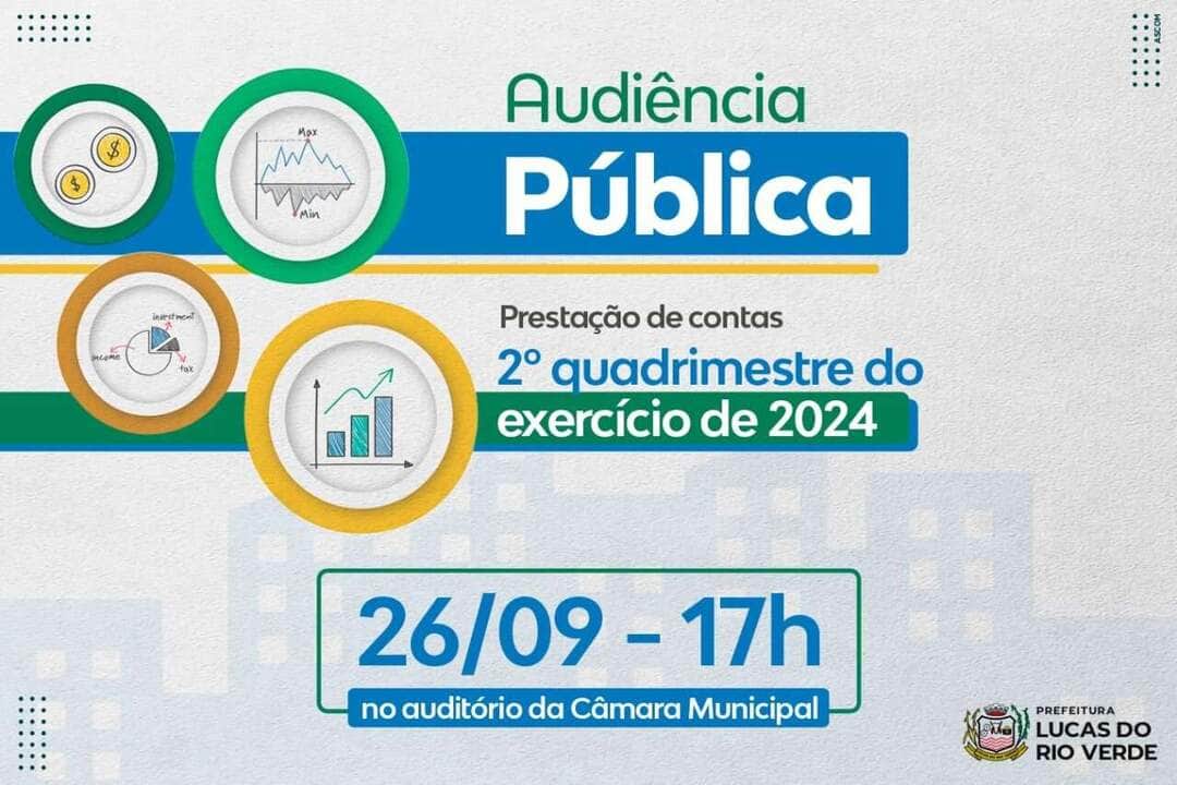 Em conformidade com a Lei de Responsabilidade Fiscal nº 101/2000, a Prefeitura de Lucas do Rio Verde, por meio da Secretaria de Desenvolvimento Econômico, Planejamento e Cidade, realizará uma audiência pública para a prestação de contas do 2º quadrimestre do exercício de 2024. O evento ocorrerá no dia 26 de setembro de 2024, no auditório da Câmara de Vereadores, com início às 17h.