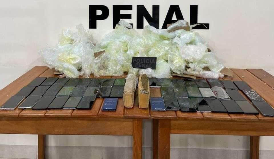 Os policiais apreenderam 14 itens semelhantes a pequenos tijolos de entorpecente envolvidos em plástico bolha, que ao abrir encontraram de dois a três aparelhos smartphones em cada pacote, além do entorpecente. O material foi apreendido e encaminhado para a Polícia Civil, que investiga o caso.