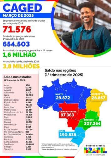 Nos últimos 12 meses, entre abril de 2024 e março de 2025, o saldo registrado em Mato Grosso é de 25.620 empregos formais, resultado de 657,8 mil admissões e 632,2 mil desligamentos. Com esses resultados, o estoque, ou seja, a quantidade total de pessoas formalizadas atuando no estado chegou em março deste ano a 969,9 mil pessoas.