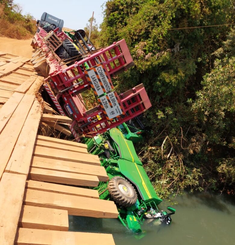 Apesar do susto, não houve registro de feridos. Tanto o caminhão quanto a prancha e a colheitadeira acabaram caindo às margens do rio, o que chamou a atenção de moradores e trabalhadores da região.