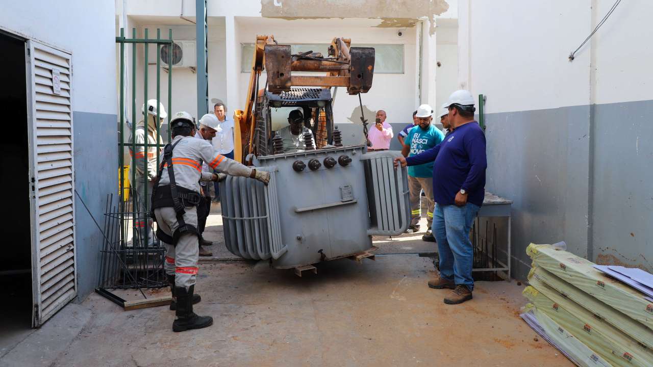 Com a chegada de um novo transformador pela manhã, equipes de engenharia iniciaram a instalação do equipamento. Por ser uma estrutura antiga, o trabalho exige quebras de paredes do prédio, para adaptações na casa de máquinas.