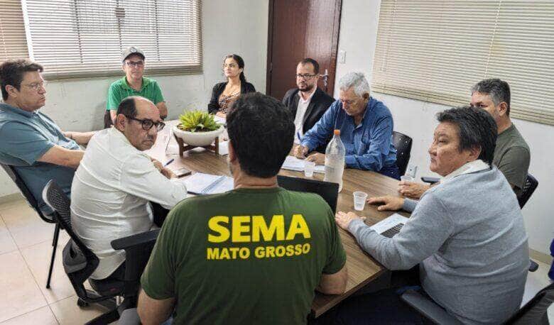 O vice-prefeito de Cáceres, Luiz Landim, acompanhado pelos secretários municipais Jeremias Pereira Leite, Wilson Kishi, Maycon Oliveira, Valéria Alves de Souza, Gustavo Calábria e pelo coordenador de Meio Ambiente, Diego Senn, recebeu os técnicos Pedro Borges e Fernando Araújo Bruno, da Superintendência de Gestão de Desconcentração e Descentralização da Secretaria de Estado de Meio Ambiente (SEMA).