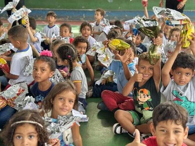 Os ovos de chocolate foram entregues durante as atividades regulares nos Centros Municipais de Educação Básica (CMEB) e Infantil (CMEI), na manhã desta quarta-feira (16), incluindo as escolas indígenas da Terra Indígena São Marcos.