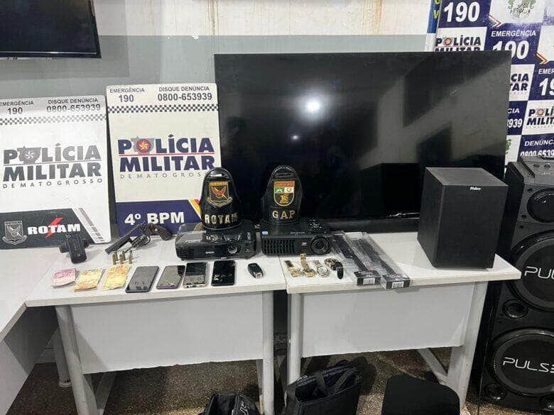 Após a prisão dos suspeitos, as equipes recuperaram dois retroprojetores, um home theather, uma caixa de som, duas facas, uma televisão e quatro relógios pertencentes as vítimas. Foram localizados, ainda, uma fritadeira elétrica, dois aparelhos celulares e R$ 50 em espécie.