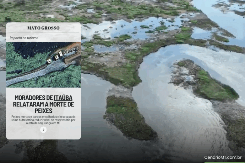 Moradores de Itaúba, a 599 km de Cuiabá, registraram a morte de peixes e dificuldades na navegação depois que a Eletrobras executou um procedimento de segurança na Usina Hidrelétrica Colíder, no norte de Mato Grosso. O ajuste envolveu o rebaixamento do nível do reservatório, o que alterou o fluxo de água no Rio Teles Pires. As informações são do G1 Mato Grosso.