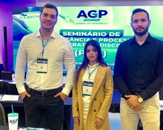 Os servidores Eline Cristina e Ruan Bonatti, assessores técnico-jurídicos da Secretaria Adjunta de Gestão de Pessoas de Rondonópolis, juntamente com o procurador municipal Márcio Henrique, estão participando de um importante seminário em Curitiba (PR). O evento, promovido pelo Instituto AGP, é voltado para a capacitação em sindicância e processo administrativo disciplinar.