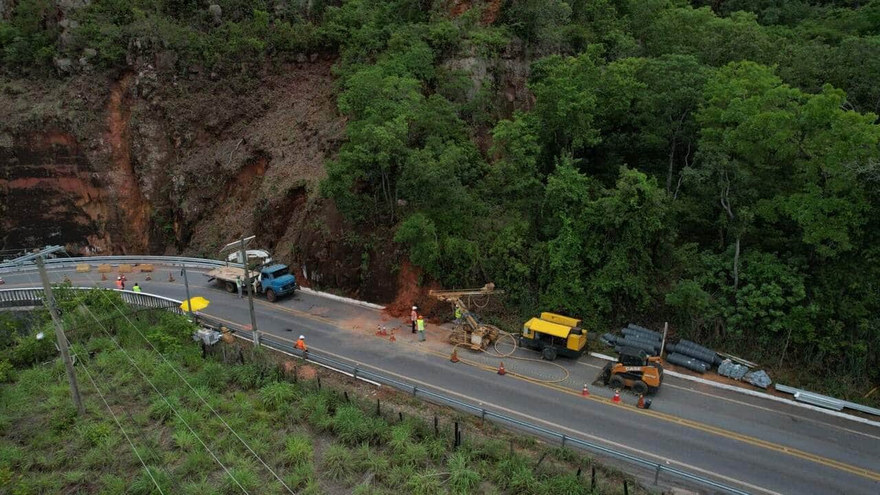 A Secretaria de Estado de Infraestrutura e Logística (Sinfra-MT) iniciou, na manhã desta quinta-feira (04.01), os trabalhos para implantação das telas de contenção na região do Portão do Inferno, na MT-251, mais conhecida como “Estrada de Chapada dos Guimarães”.