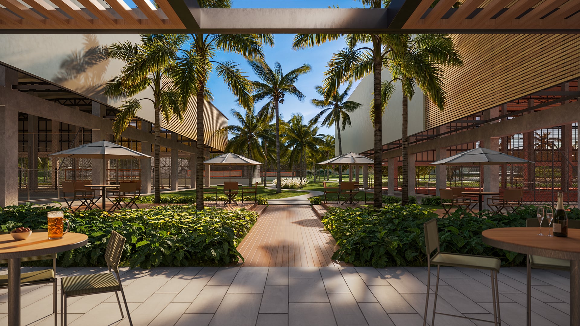 O Hamoa Sinop traduz a maturidade da marca. O projeto reúne arquitetura contemporânea, espaços de convivência integrados, ambientes gastronômicos, áreas esportivas com arenas cobertas e um paisagismo pensado para qualificar a relação entre rotina, lazer e bem-estar. A organização dos espaços segue o conceito de resort residencial, modelo que a empresa vem aperfeiçoando ao longo de anos de atuação no Centro-Oeste.
