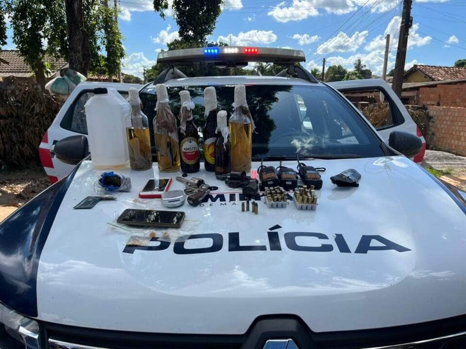 Na casa, os policiais encontraram munições, porções de maconha e pasta base de cocaína, além de três rádios comunicadores e seis artefatos explosivos caseiros conhecidos como coquetel molotov.
