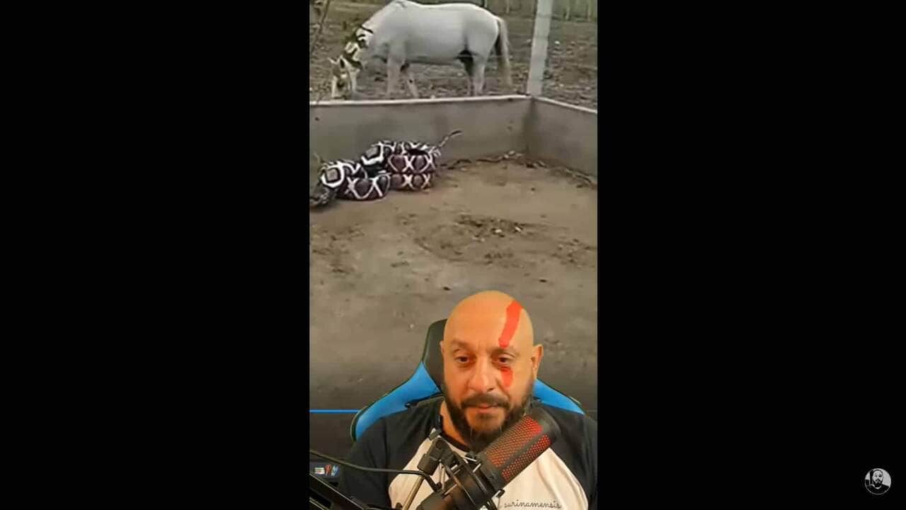 Aparentemente uma cobra Cascavel enorme, mas na realidade não passa de uma brincadeira. O Biólogo Henrique esclarece que se trata de pneus. É isso mesmo, pneus!