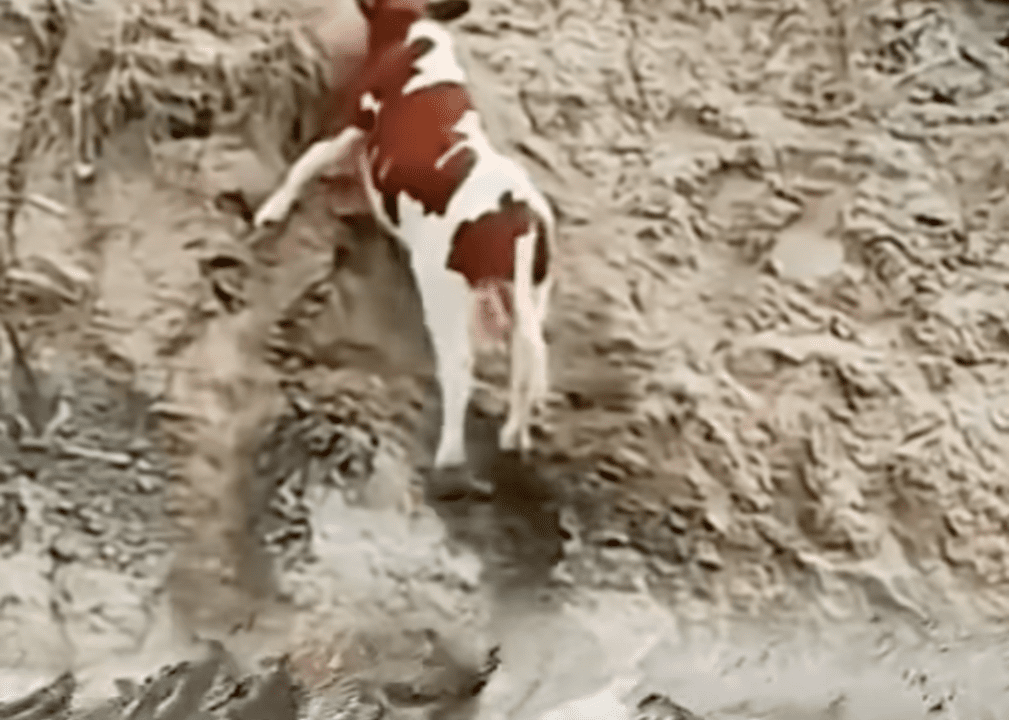 Inacreditável; vaca fica com a cabeça presa em buraco de tatu