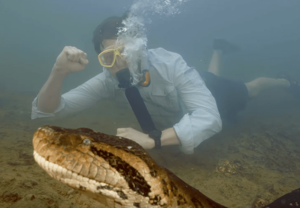 O cientista e apresentador de TV holandês Freek Vonk protagonizou um momento impressionante na Amazônia: ele encontrou e nadou ao lado de uma cobra gigante de 8 metros de comprimento e mais de 200 quilos!