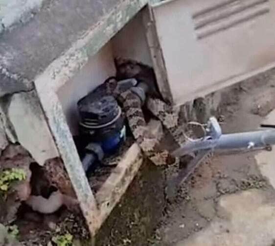 Imagine sair de casa para verificar o consumo de água e, em vez de números no relógio do hidrômetro, dar de cara com uma enorme cobra te encarando.