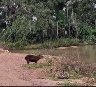 A capivara, por sinal, mostrou que não é à toa que é campeã em natação entre os roedores. Já a onça, que até nada bem, preferiu não se molhar por tão pouco. Afinal, dignidade felina também tem limite!