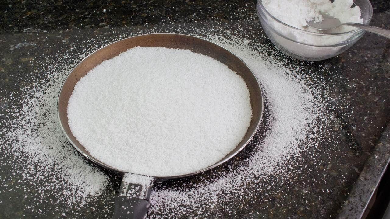 Salpique Sal: Adicione uma pitada de sal sobre a tapioca na frigideira.