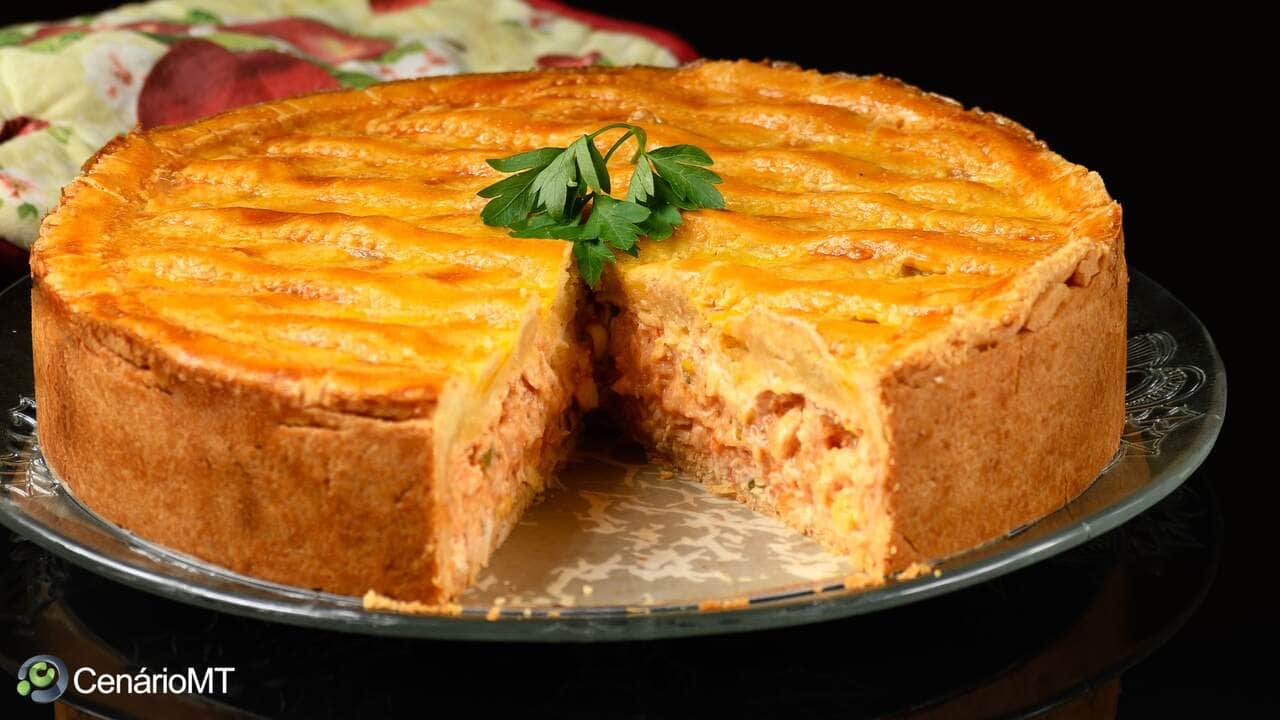 - Leve a torta ao forno pré-aquecido e asse por cerca de 40 minutos, ou até que a massa esteja dourada e crocante.
