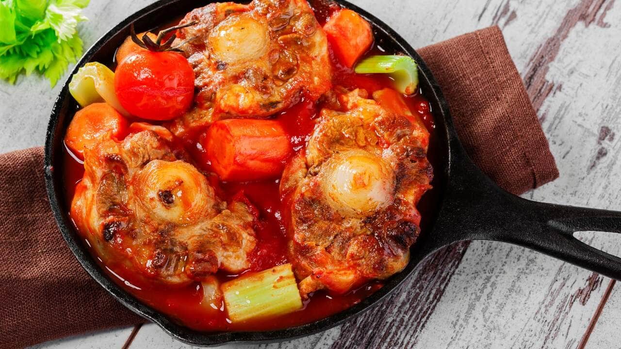 A rabada é um corte de carne que é retirado da cauda do boi. É um corte de carne duro, por isso requer um longo tempo de cozimento para ficar macio. O agrião é um vegetal que é rico em vitaminas e minerais, e que combina muito bem com o sabor da rabada.