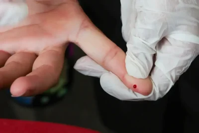 O teste utiliza a técnica de imunocromatografia e apresenta resultado em poucos minutos. Para a análise, é coletada uma pequena amostra de sangue por meio de um furo na ponta do dedo.