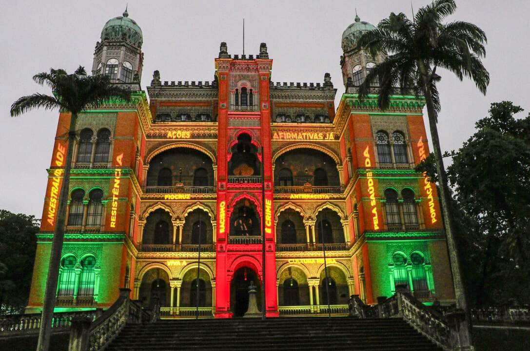 Já acostumado a receber iluminação com cores especiais em datas temáticas, o Castelo Mourisco, ícone arquitetônico no Rio de Janeiro e sede da Fundação Oswaldo Cruz (Fiocruz), recebe nesta segunda-feira (20), Dia Nacional de Zumbi e da Consciência Negra, projeção de frases antirracistas.