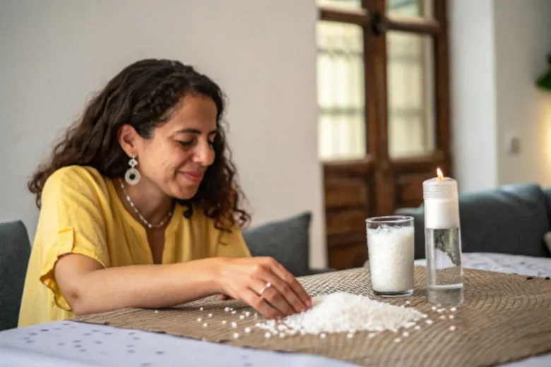 - Palavras de força: repita, em voz baixa, três vezes: “Que este sal afaste o que me trava, que esta água flua e leve embora o que me trava, que novos caminhos se abram agora.”