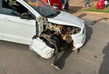 Condutora perde controle do veículo e colide com poste na Avenida Brasil em Lucas do Rio Verde