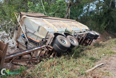 Pneu de carreta estoura e motorista de 45 anos morre em capotamento na BR-174, em Mato Grosso