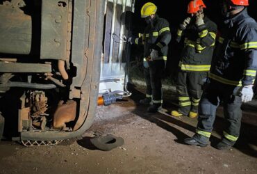 Bombeiros de Mato Grosso de realizam desencarceramento de vítima e resgate de bois após caminhão tombar