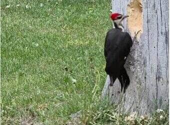 Pica-pau é flagrado em ação e mostra força impressionante ao abrir buraco em árvore
