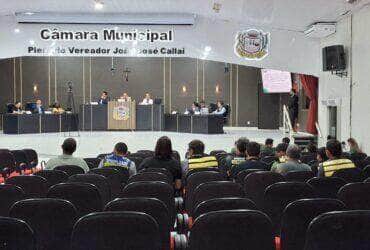 Mototaxistas acompanham sessão e presidente da Câmara cobra regulamentação de aplicativo em Lucas do Rio Verde