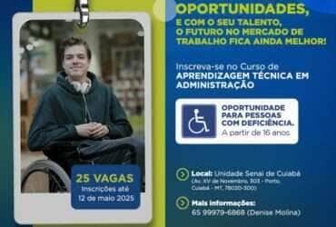 Senai e Sesi MT abrem 25 vagas para curso de Aprendizagem Técnica em Administração voltado a pessoas com deficiência