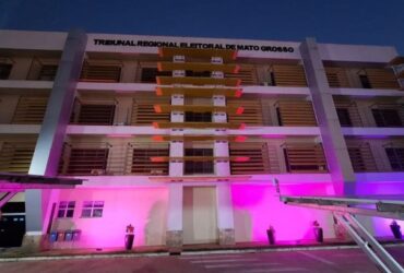Edifício-sede o TRE-MT ganha iluminação especial e reforça apoio à campanha Outubro Rosa