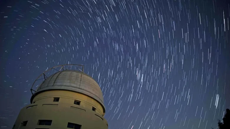 Estrelas de pontuação completa e Observatório de Kyoto Okayama = novembro de 2020, Ala Yamashina, Cidade de Kyoto (comparação de 310 quadros de exposição por segundo, fotografado por Enmori)