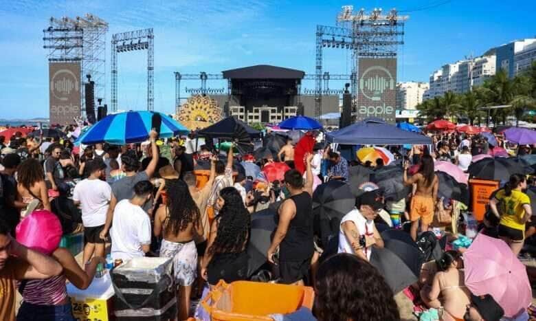 O evento, realizado em espaço aberto, deve reunir público de cerca de 1,6 milhão de pessoas. Segundo relatos publicados hoje (3) em redes sociais, a área reservada da praia foi invadida durante a manhã e a estrutura teria cedido.